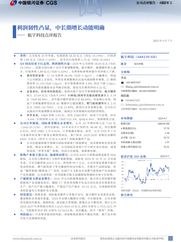 【银河证券】【20250407】航宇科技(688239)点评报告:利润韧性凸显,中长期成长动能明确-11页 公司研究