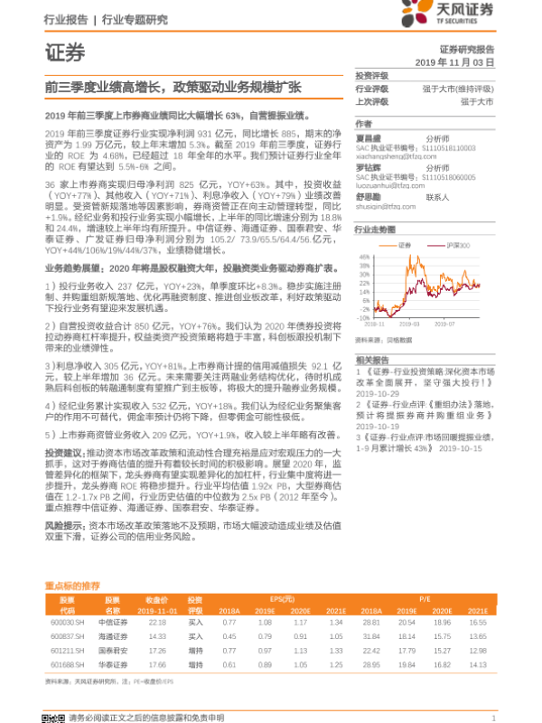 【天风证券】【20191103】证券行业专题研究:前三季度业绩高增长,政策驱动业务规模扩张-15页 行业研究
