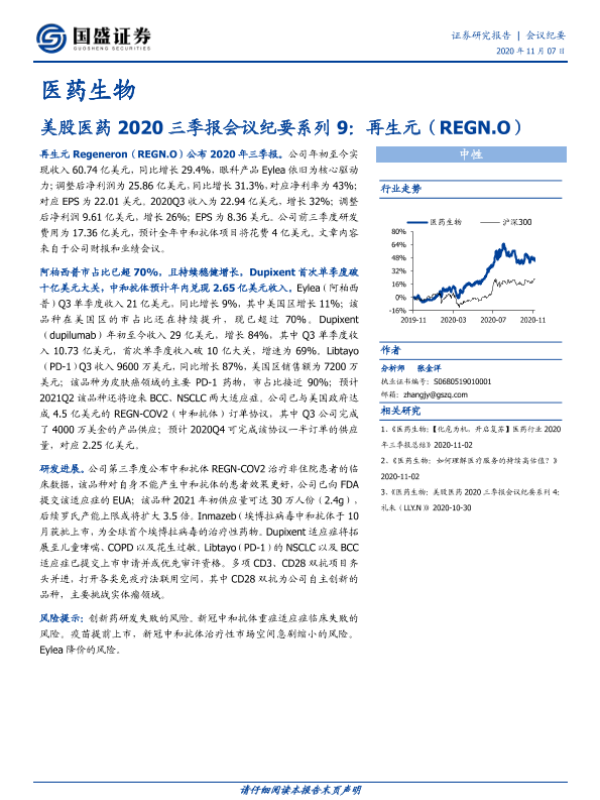 【国盛证券】【20201107】美股医药2020三季报会议纪要系列9:再生元-12页 会议纪要