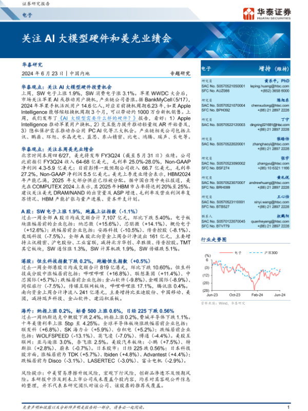【华泰证券】【20240623】20240623-华泰证券-电子专题研究:关注AI大模型硬件和美光业绩会-45页 行业研究