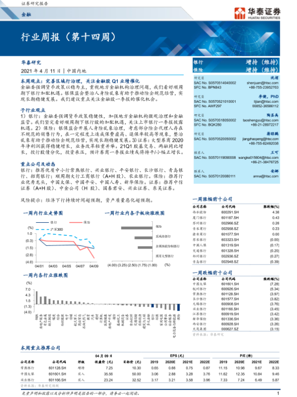 【华泰证券】【20210411】金融行业周报(第十四周)-24页 行业研究