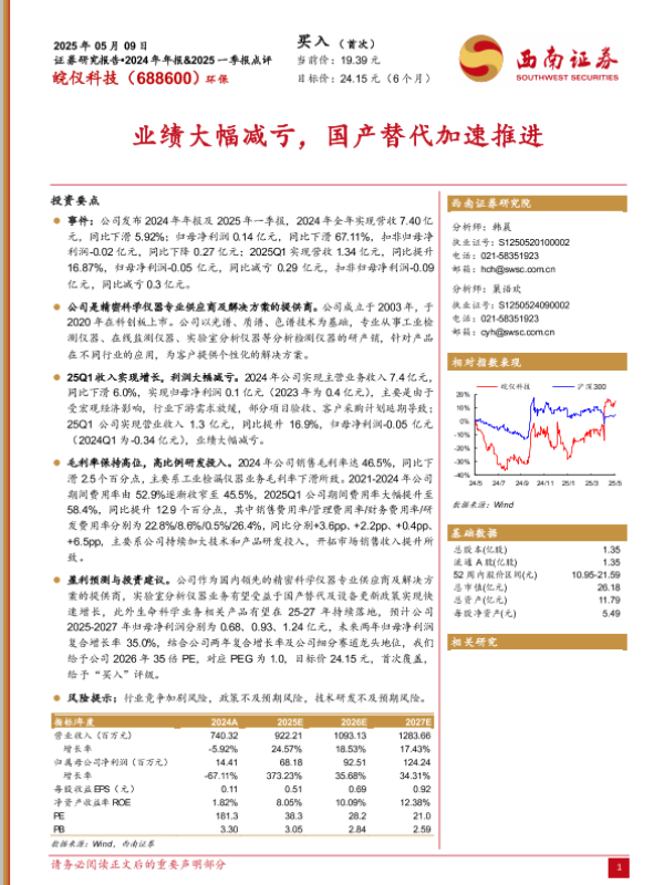 【西南证券】【20250509】皖仪科技2024年年报&2025一季报点评:业绩大幅减亏,国产替代加速推进-12页 证券期货研究报告