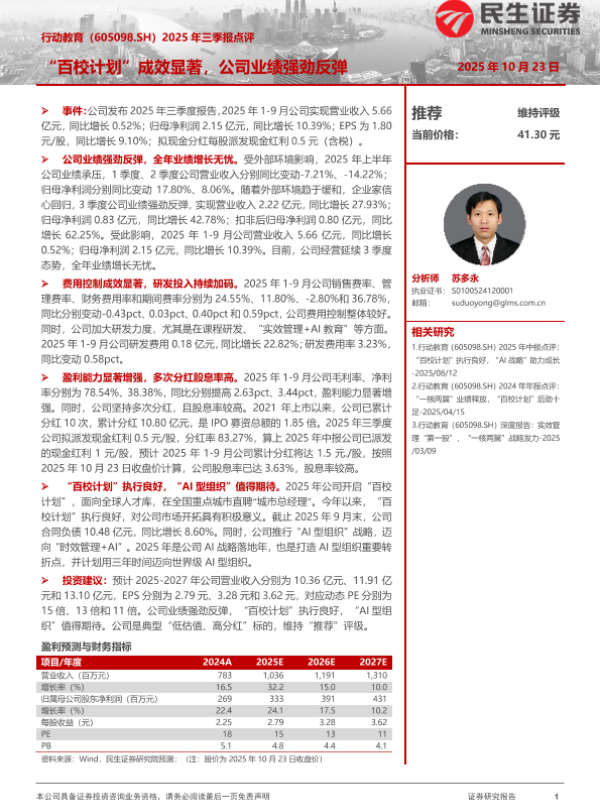 【民生证券】【202510】2025年三季报点评:“百校计划”成效显著,公司业绩强劲反弹-3页 证券期货研究报告