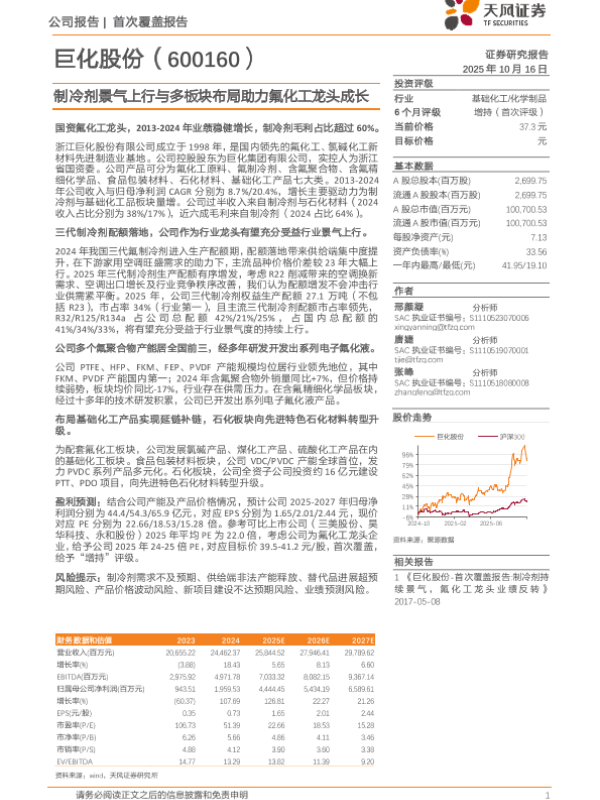 【天风证券】【202510】巨化股份-首次覆盖报告 制冷剂持续景气,氟化工龙头业绩反转-40页 证券期货研究报告