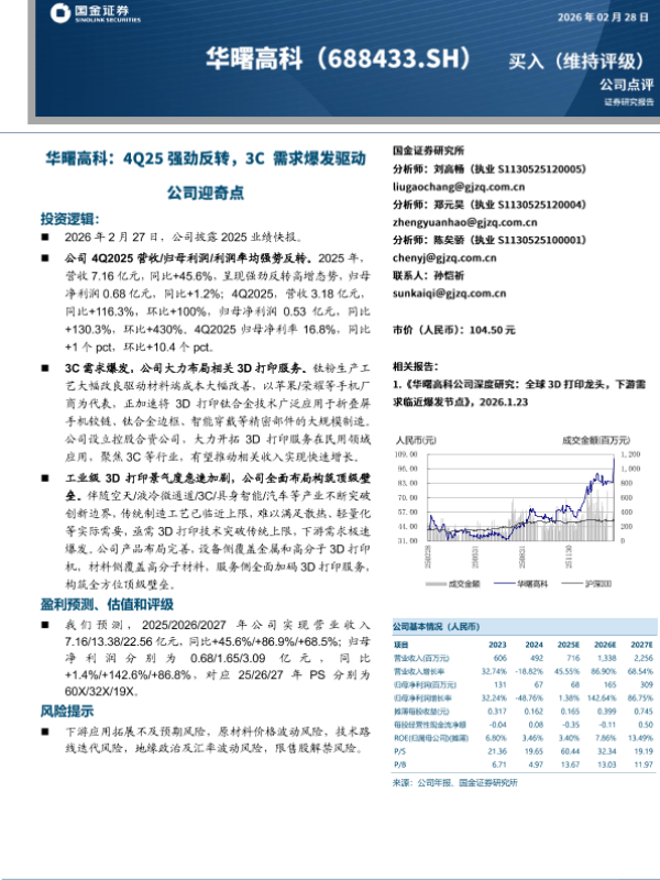 【国金证券】【202602】华曙高科 4Q25强劲反转,3CC需求爆发驱动公司迎奇点-4页 证券期货研究报告