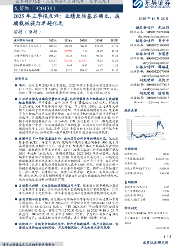 【东吴证券】【202510】2025年三季报点评:业绩反转基本确立,玻璃载板获订单超亿元-3页 证券期货研究报告