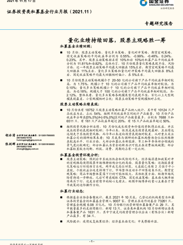 【国金证券】【20211117】证券投资类私募基金行业月报-13页 行业研究