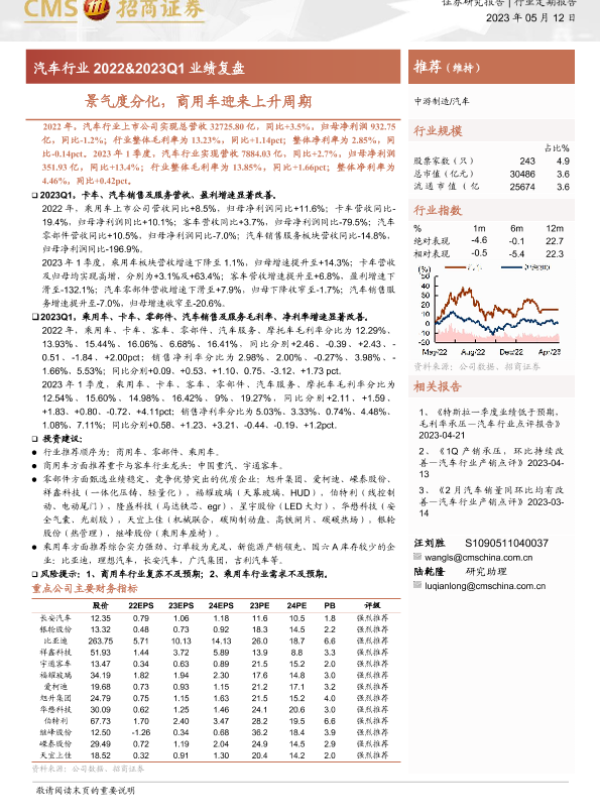 【海通证券】【20230512】汽车行业2022&2023Q1业绩复盘:景气度分化,商用车迎来上升周期-13页 行业研究