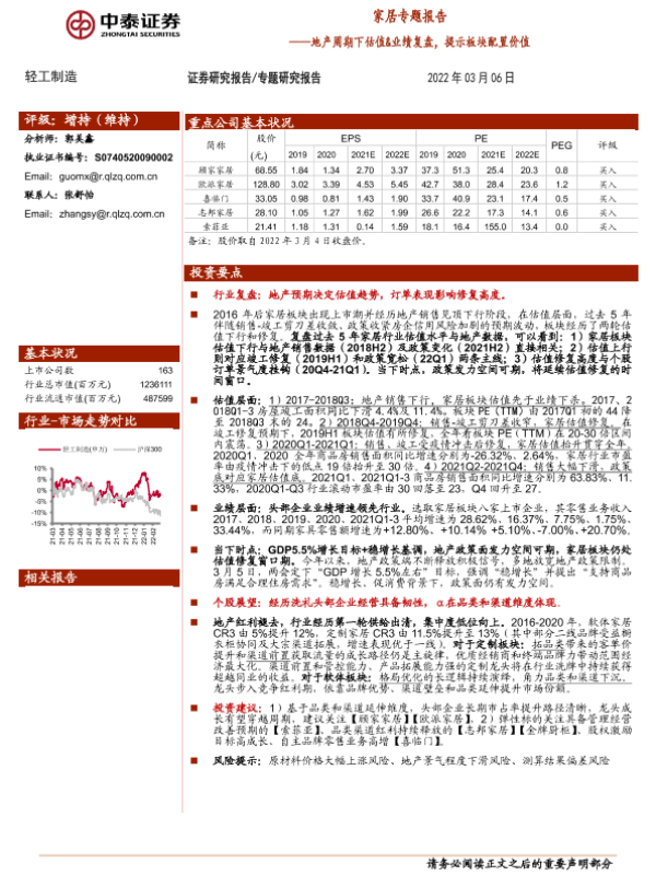 【中泰证券】【20220306】轻工制造行业家居专题报告:地产周期下估值&业绩复盘,提示板块配置价值-16页 行业研究