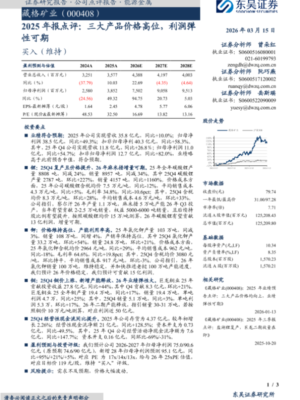 【东吴证券】【202603】2025年报点评:三大产品价格高位,利润弹性可期-3页 证券期货研究报告