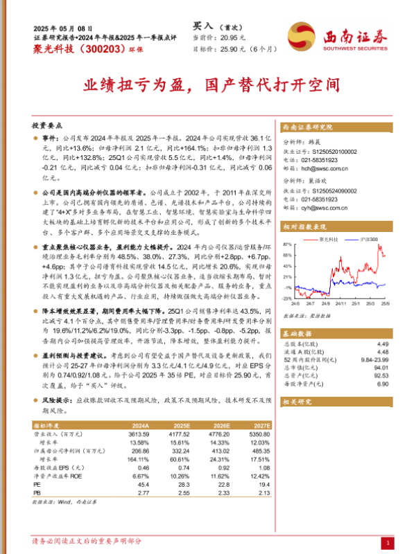 【西南证券】【20250508】聚光科技(300203)2024年年报&2025年一季报点评-11页 证券期货研究报告