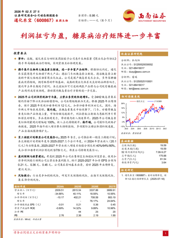 【西南证券】【2025】利润扭亏为盈,糖尿病治疗矩阵进一步丰富-6页 证券期货研究报告