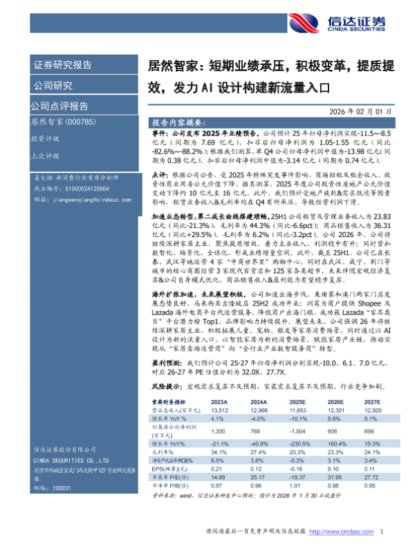 【信达证券】【202602】居然智家:短期业绩承压,积极变革,提质提效,发力AI设计构建新流量入口-4页 公司研究