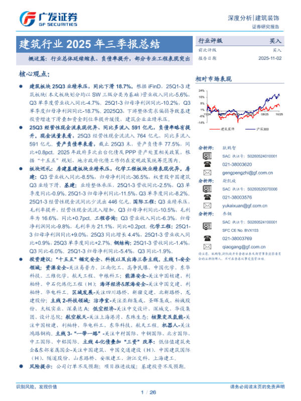 【广发证券】【202511】建筑行业2025年三季报总结:概述篇:行业总体延续缩表、负债率提升,部分专业工程表现突出-26页 证券期货研究报告