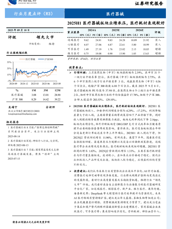 【财信证券】【202509】医疗器械行业月度点评:2025H1医疗器械板块业绩承压,医疗耗材表现较好-12页 证券期货研究报告