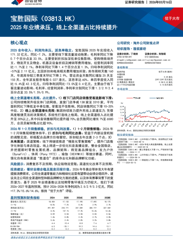 【国信证券】【202603】2025年业绩承压,线上全渠道占比持续提升-10页 证券期货研究报告