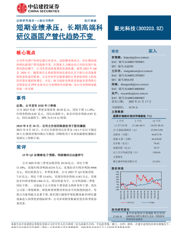 【中信建投证券】【202511】短期业绩承压,长期高端科研仪器国产替代趋势不变-10页 证券期货研究报告