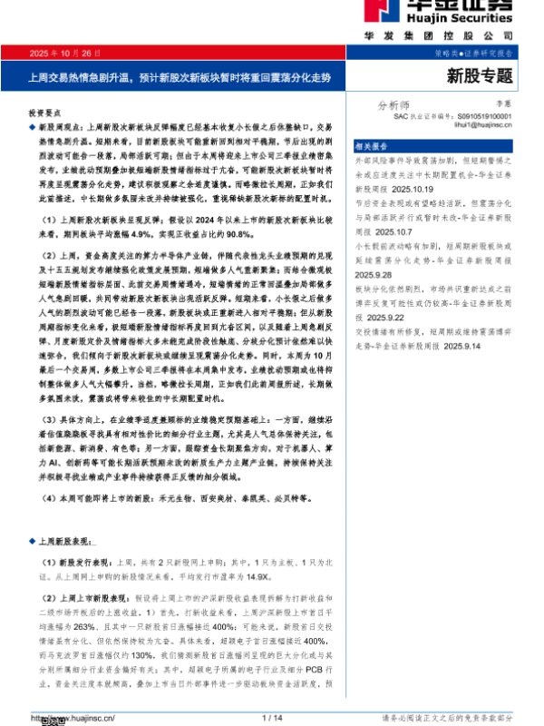 【华金证券】【202510】上周交易热情急剧升温,预计新股次新板块暂时将重回震荡分化走势-14页 证券期货研究报告
