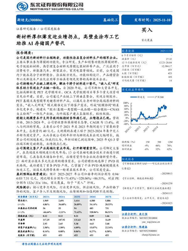 【东北证券】【202511】新材料厚积薄发迎业绩拐点,高壁垒涂布工艺助推AI存储国产替代-30页 证券期货研究报告