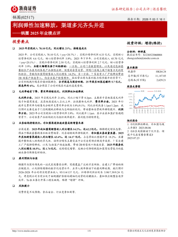 【浙商证券】【202603】利润弹性加速释放,渠道多元齐头并进——锅圈 2025年业绩点评-4页 证券期货研究报告