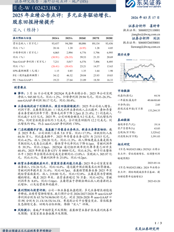 【东吴证券】【202603】2025年业绩公告点评:多元业务驱动增长,股东回报持续提升-3页 证券期货研究报告
