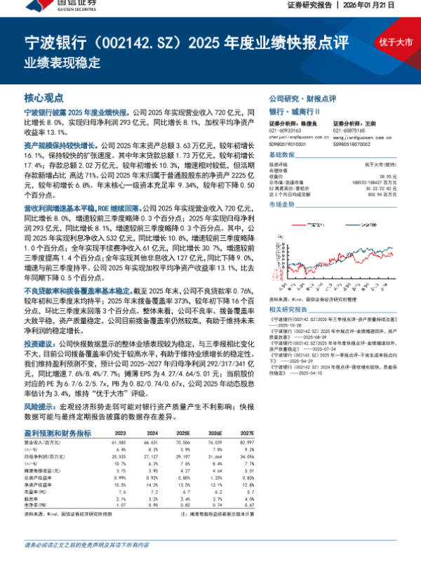 【国信证券】【202601】优于大市 宁波银行(002142.SZ)2025年度业绩快报点评-4页 证券期货研究报告