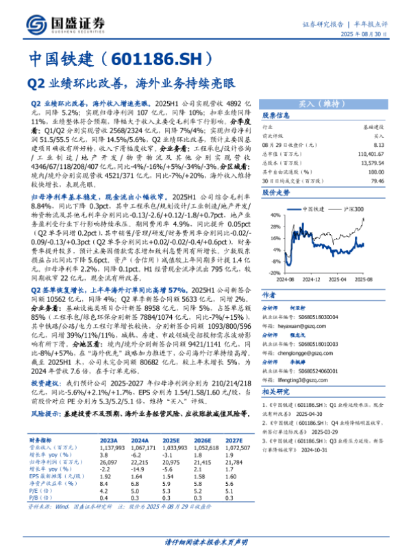 【国盛证券】【20250830】中国铁建(601186.SH)-Q2业绩环比改善,海外业务持续亮眼-3页 证券期货研究报告