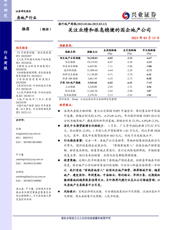 【兴业证券】【20230313】海外地产周报:关注业绩和派息稳健的国企地产公司-13页 行业研究