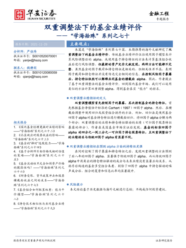 【华安证券】【20211129】双重调整法下的基金业绩评价-17页 行业研究