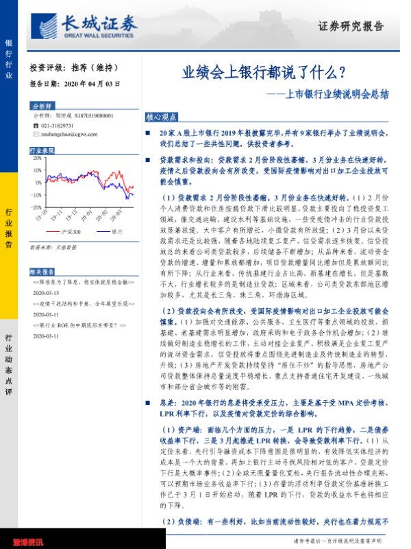 【长城证券】【20200403】上市银行业绩说明会总结:业绩会上银行都说了什么?-3页 会议纪要