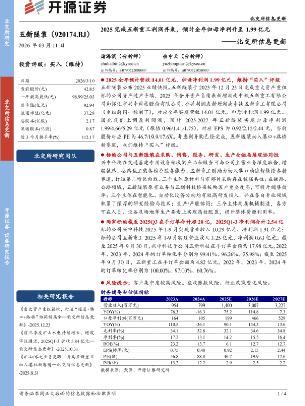 【开源证券】【202603】北交所信息更新:五新隧装(920174.BJ)-4页 证券期货研究报告