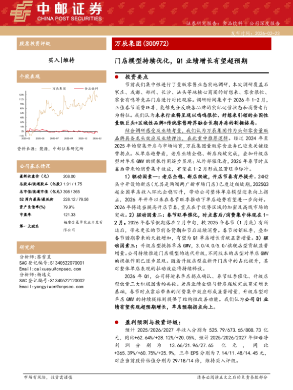 【中邮证券】【202602】万辰集团(300972)门店模型持续优化,Q1业绩增长有望超预期-17页 证券期货研究报告