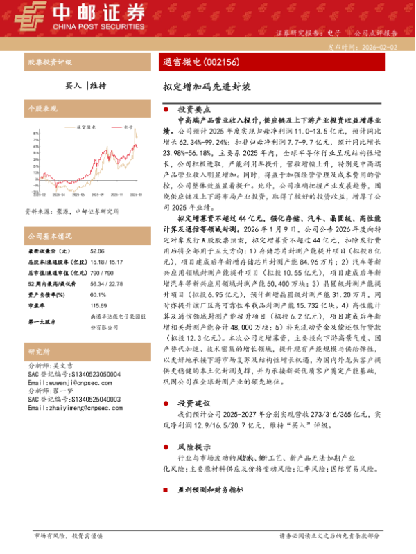 【中邮证券】【202602】通富微电(002156):拟定增加码先进封装-5页 证券期货研究报告