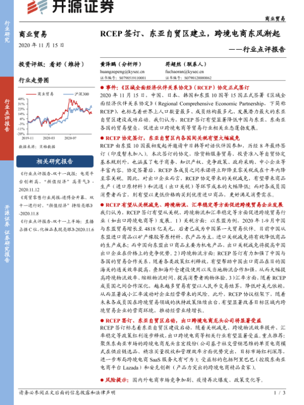 【开源证券】【20201115】RCEP签订、东亚自贸区建立,跨境电商东风渐起-3页 行业研究