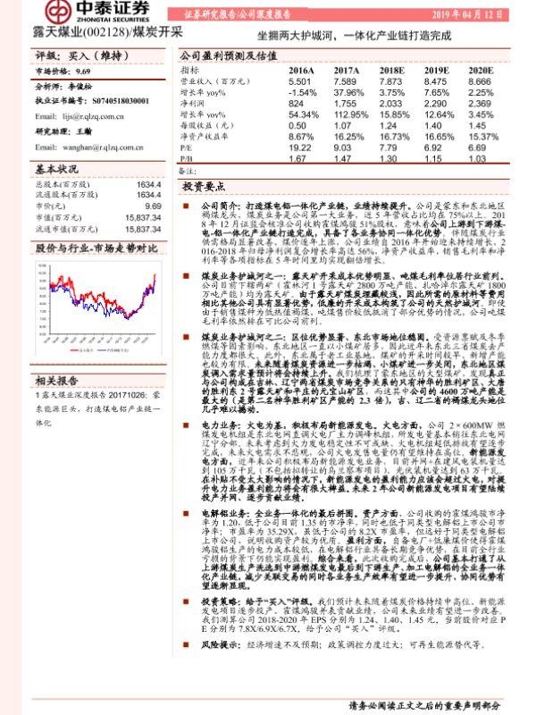 【中泰证券】【20190412】露天煤业-002128.SZ-坐拥两大护城河,一体化产业链打造完成-20页 行业研究