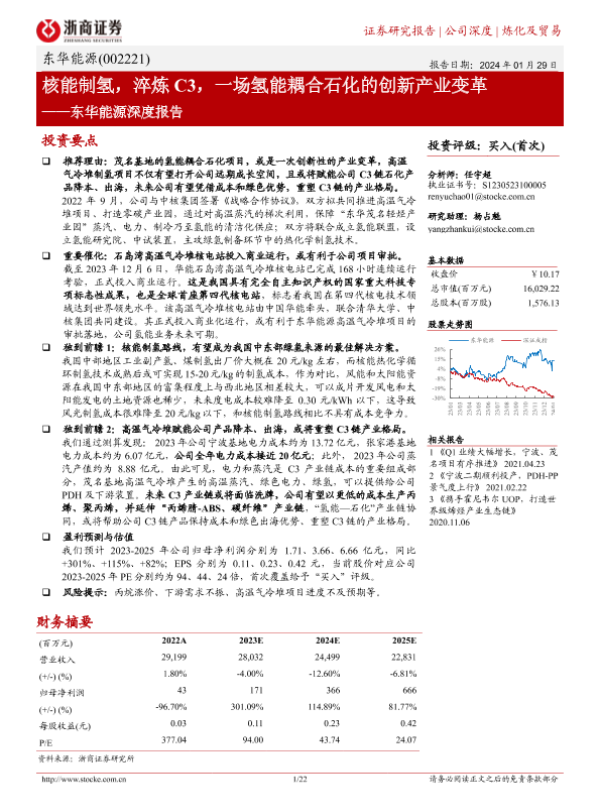 【浙商证券】【20240129】东华能源深度报告:核能制氢,淬炼C3,一场氢能耦合石化的创新产业变革-22页 行业研究