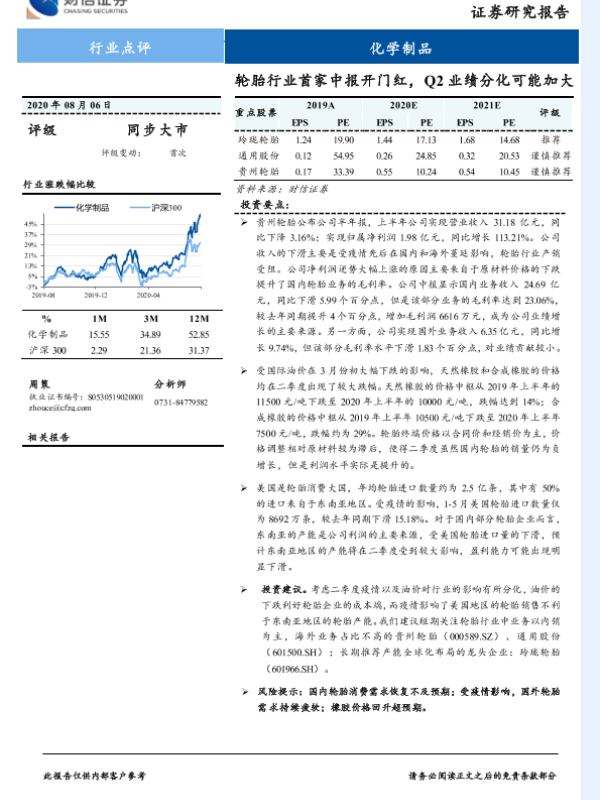 【财信证券】【20200806】化学制品行业点评:轮胎行业首家中报开门红,Q2业绩分化可能加大-4页 行业研究