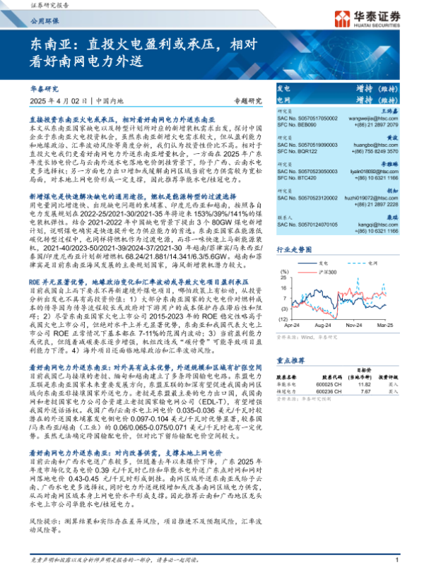 【华泰证券】【20250402】公用环保行业:东南亚,直投火电盈利或承压,相对看好南网电力外送-25页 行业研究
