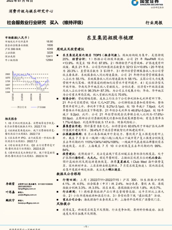 【民生证券】【20220706】商贸社服行业“庖丁解牛”拆析招股书(九):东呈集团,全国第五大酒店集团,立足华中华南向全国发力-33页 行业研究