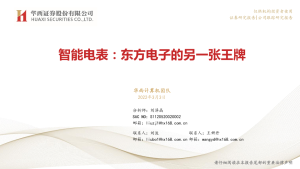 【华西证券】【20220303】智能电表:东方电子的另一张王牌-24页 行业研究