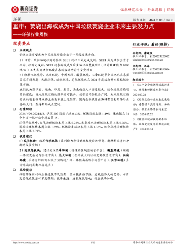 【浙商证券】【20240804】重申:焚烧出海或成为中国垃圾焚烧企业未来主要发力点-13页 行业研究