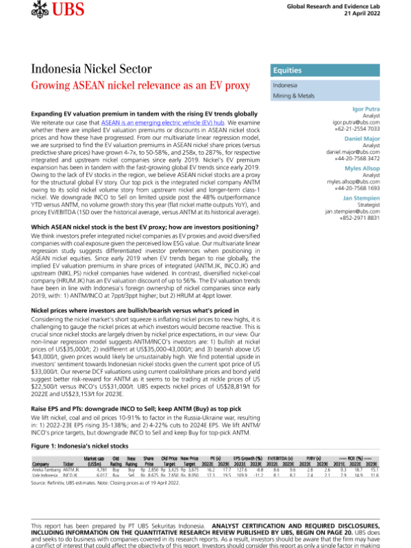 【瑞银】【20220421】瑞银-亚太地区矿业与金属行业-印尼镍行业:东盟镍作为电动汽车代替物的重要性日益增强-28页 行业研究