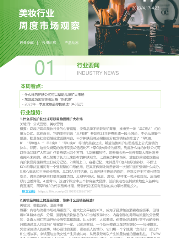 【艾瑞咨询】【20230421】2023年第17周:美妆行业周度市场观察-7页 行业研究