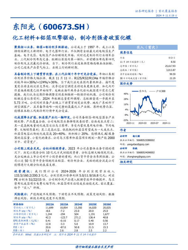 【国盛证券】【20241119】东阳光(600673)化工材料+铝箔双擎驱动,制冷剂强者破茧化蝶-29页 行业研究