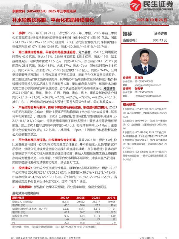 【民生证券】【202510】2025年三季报点评:补水啦增长亮眼,平台化布局持续深化-3页 公司研究