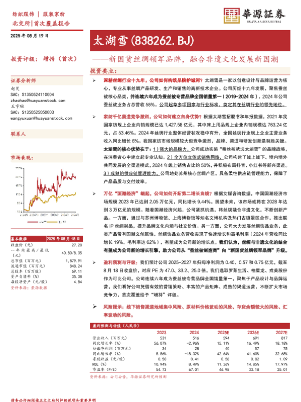 【华源证券】【20250819】太湖雪-新国货丝绸领军品牌,融合非遗文化发展新国潮-31页 证券期货研究报告
