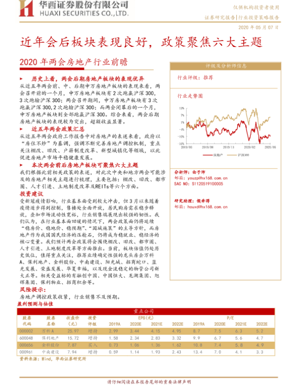 【华西证券】【20200507】2020年两会房地产行业前瞻:近年会后板块表现良好,政策聚焦六大主题-17页 行业研究