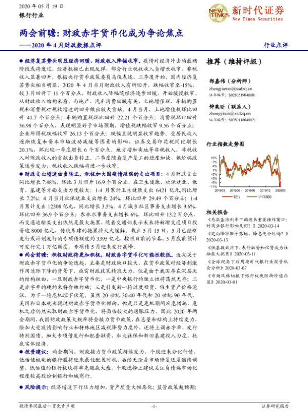 【新时代证券】【20200519】2020年4月财政数据点评-两会前瞻:财政赤字货币化成为争论焦点-10页 行业研究