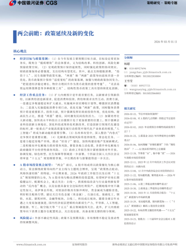 【银河证券】【202603】两会前瞻:政策延续及新的变化-15页 证券期货研究报告