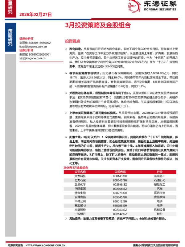 【东海证券】【202602】3月投资策略及金股组合-6页 证券期货研究报告